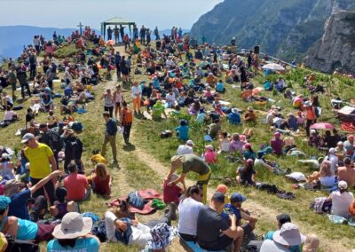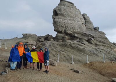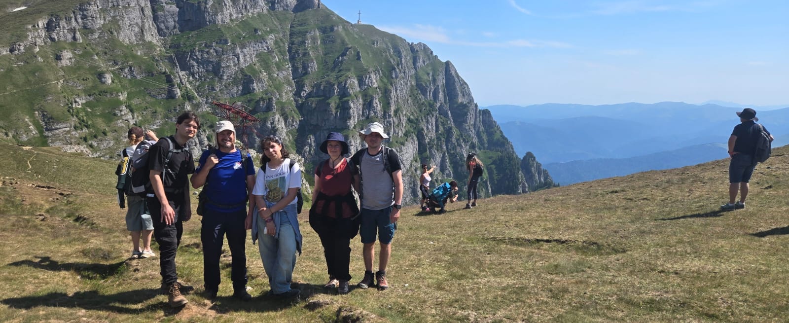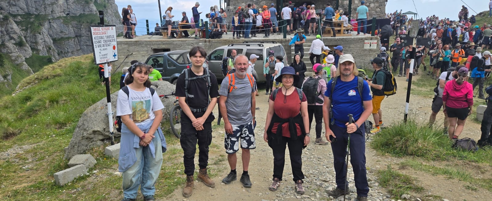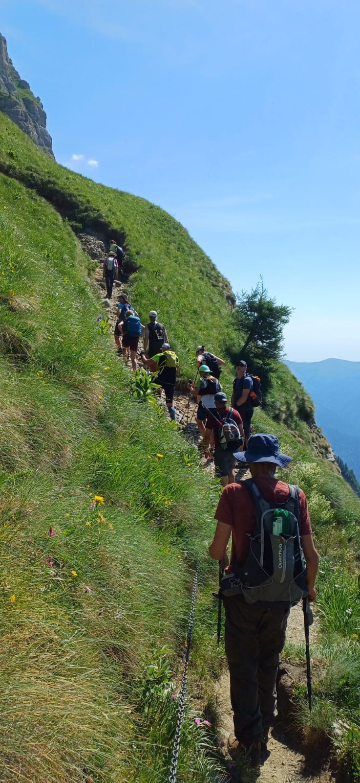 După concert urcat, tot ca de obicei, pe Brana Mare a Caraimanului la Crucea Eroilor ce străjuiește de la înălțime Valea Prahovei, am continuat cu Vf Caraiman (2384m) și cu întoarcere pe la străvechiul Sfinx și celebrele Babe, unde am și prânzit in fata bătrânului Sfinx! De aici am fost goniți spre Piatra Arsa de nebulozitatea accentuată ce ne-a adus și ceva stropi de ploaie și ceva grindină măruntă 😊 Dar, așa este într-o zi plina cu „de toate”. Soare, cer senin, norișori albi inofensivi, flori de munte și mult verde, dar și nori de ploaie și gheață. A fost încă o excursie de vacanta faina🥳 Nihil sine Deo🏆